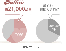 @officeは、環境対応商品の掲載比率約70%掲載のカタログと@officeだけの多彩なサポート機能で、グリーン購入を効率的に推進します。
